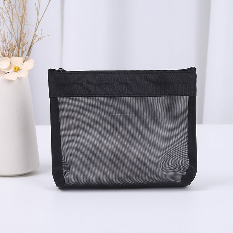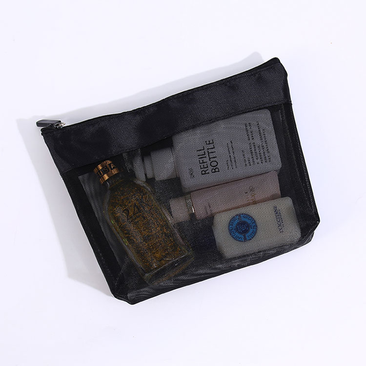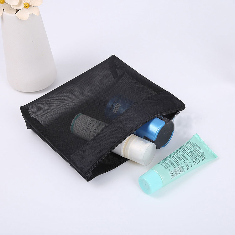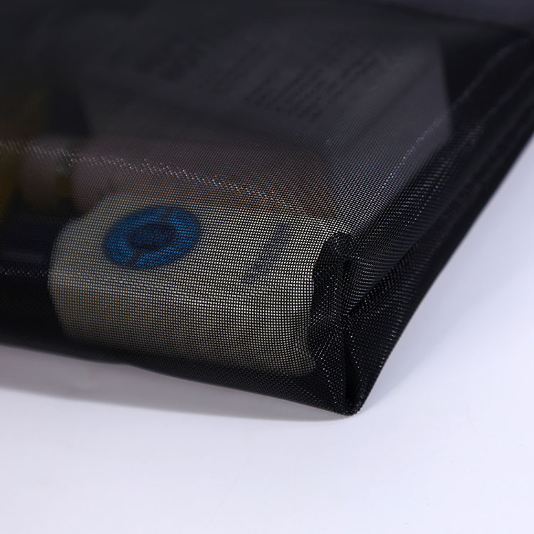 Қара торлы косметикалық сөмке жұмсақ және берік жоғары сапалы полиэфирлі тордан жасалған, сіз оларды ұзақ уақыт пайдалана аласыз. Ол үйде және шетелде тұтынушылардың үлкен ықыласына ие болды.