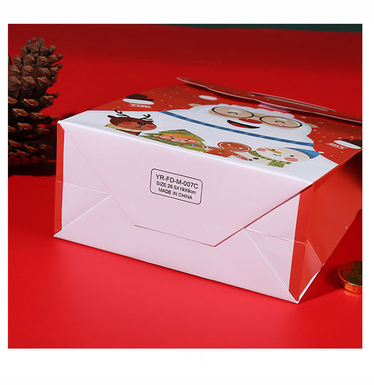 Қағаз қапшықта Рождестволық тақырыптық басып шығару бар, ол Рождество фестивалінде қолдануға өте ыңғайлы. Олар сіздің жақындарыңызға әртүрлі пішіндегі және көлемдегі сыйлықтарды ұсынудың көңілді және мерекелік әдісін ұсынады. Олар әмбебап және әртүрлі мақсаттар үшін өте ыңғайлы, мысалы, бөлшек сауда орауыштары, тағамды алып кету, мерекелік сыйлық және басқа да жеке пайдалану. Егер сізге Рождестволық қағаз қапшықтардың стилі ұнаса, бірақ өз логотипі немесе дизайны бар болса, біз оларды сіздің талаптарыңызға сай жасай аламыз.